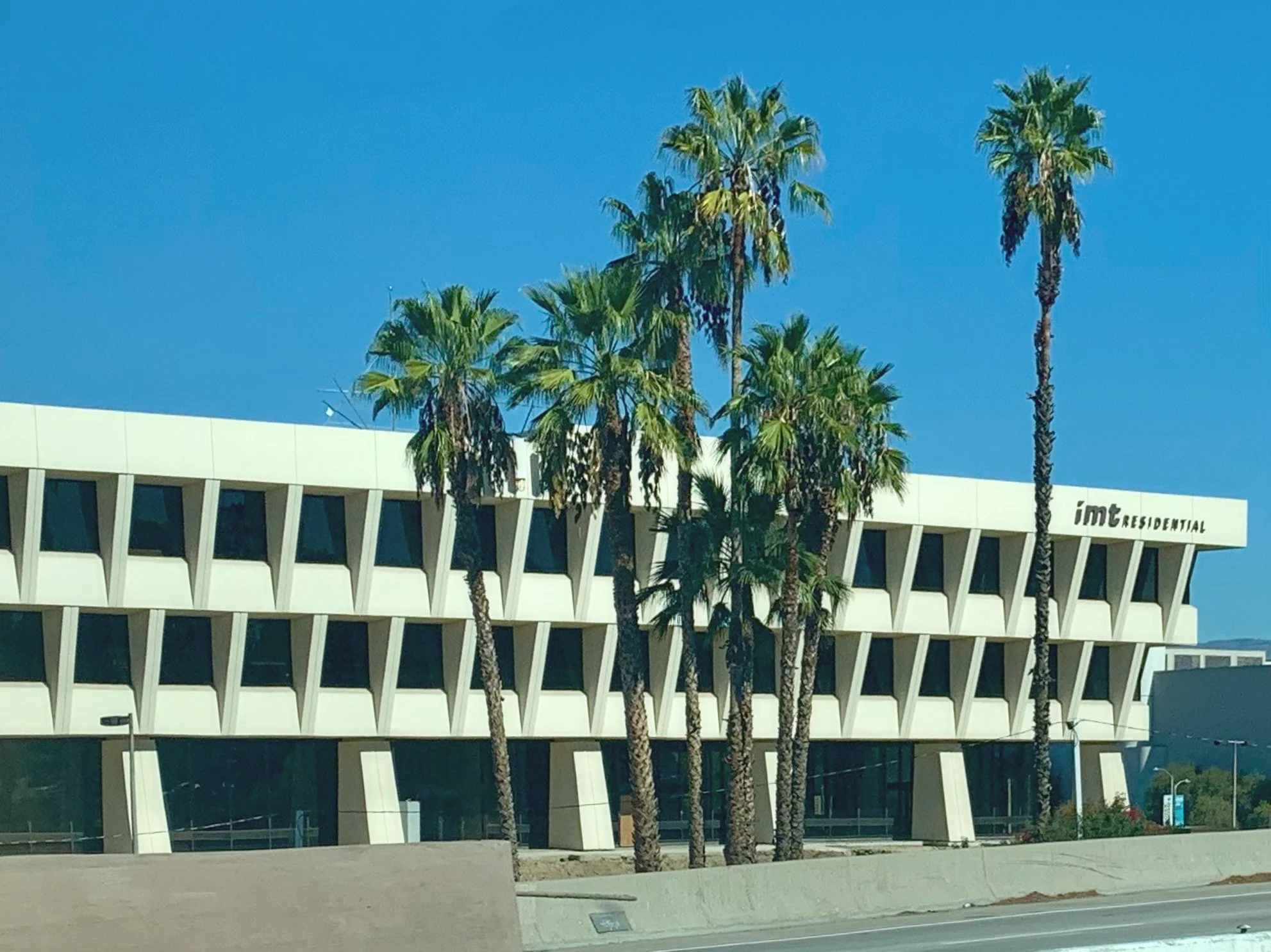 There was a whirlwind overnight in Santa Barbara this week. On the return trip home, a brutalist photo-op presented itself. As seen from the 101 Freeway, the image below is of the former Sunkist Growers Headquarters Building. A.C. Martin & Associates completed it in 1969. It may seem a little “lighter” than typical brutalist architecture, perhaps due to its color and the slight taper.