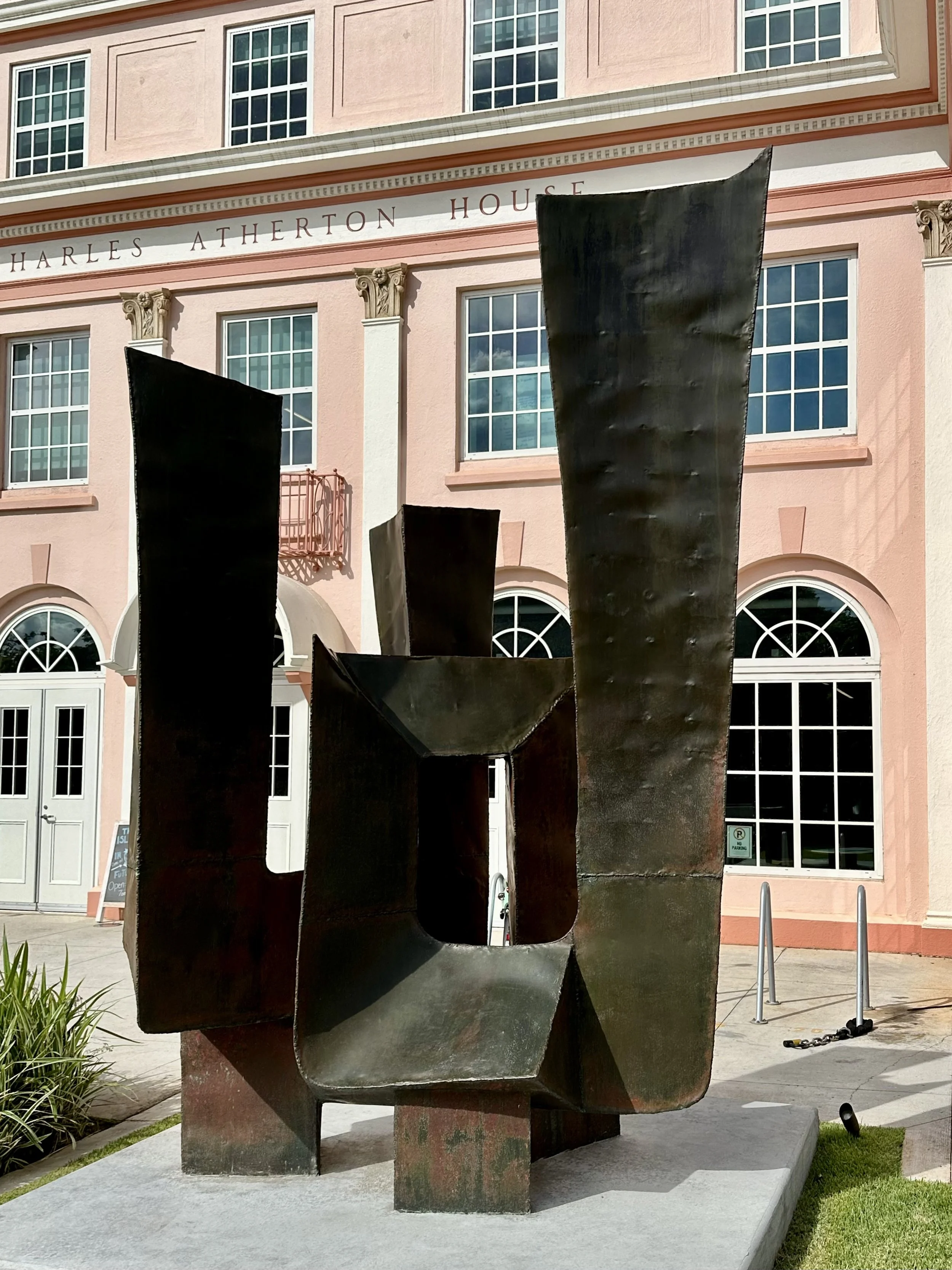 Anyone driving by University Ave. and Metcalf has surely noticed this pink building that would be at home on an episode of Bridgerton. I dropped by Island Brew inside the former YMCA building for an iced coffee drink. But first, I took a moment to appreciate the sculpture outside.