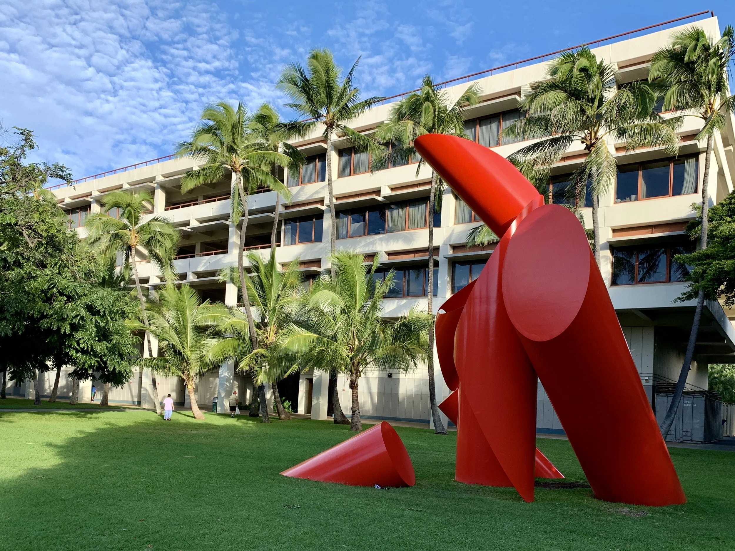 Right off of Dole Street, on Holmes Hall Lawn, is a tall red tube-like sculpture named The Gate of Hope. The sculpture was refreshed in 2017 with a new coat of paint.