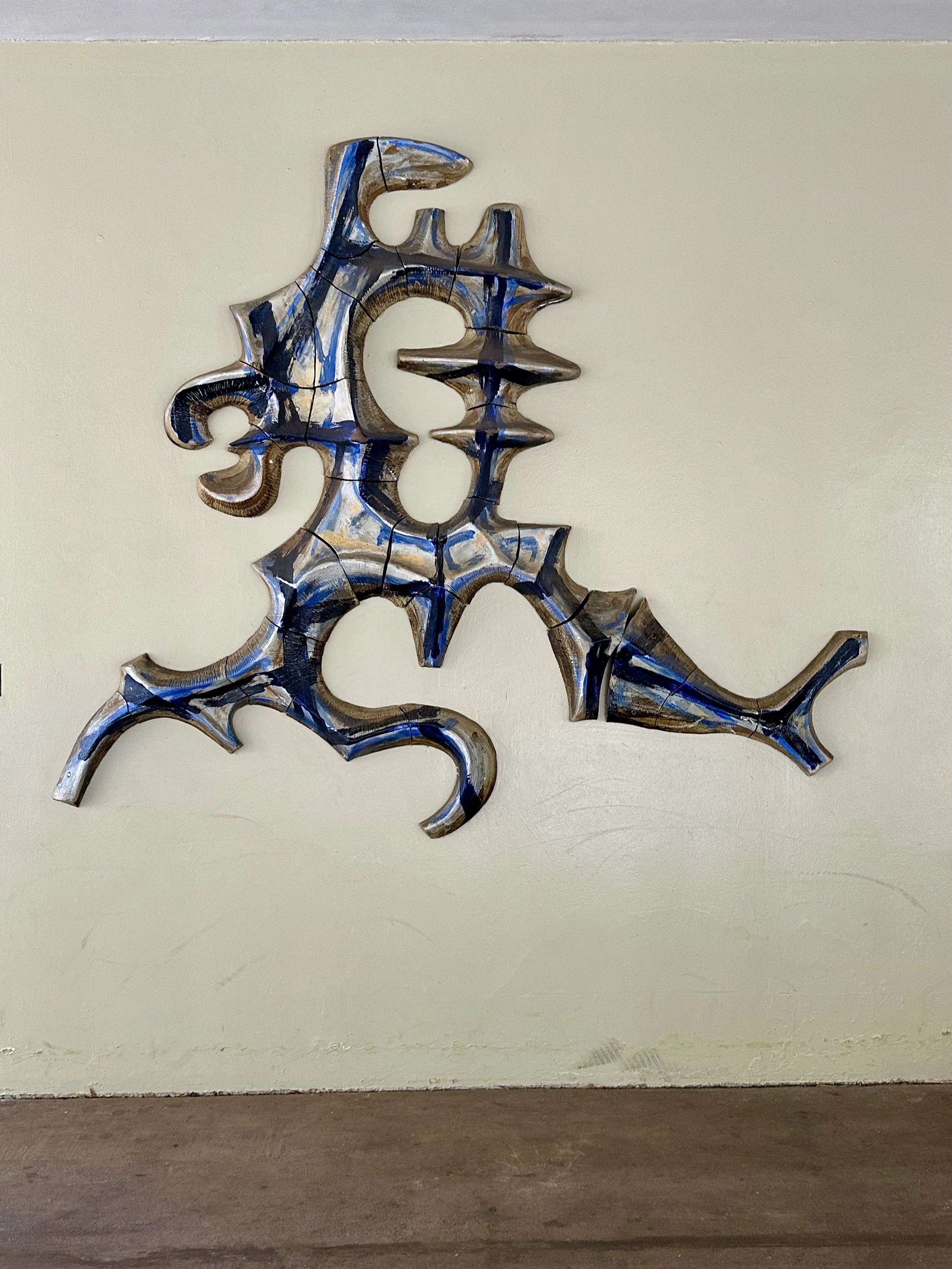 This ceramic wall sculpture outside Kuykendall Auditorium once formed one work with four nearby fountainheads, unifying the building's two wings and the plaza that links them. Water trickled slowly over the irregularly shaped fountainheads.